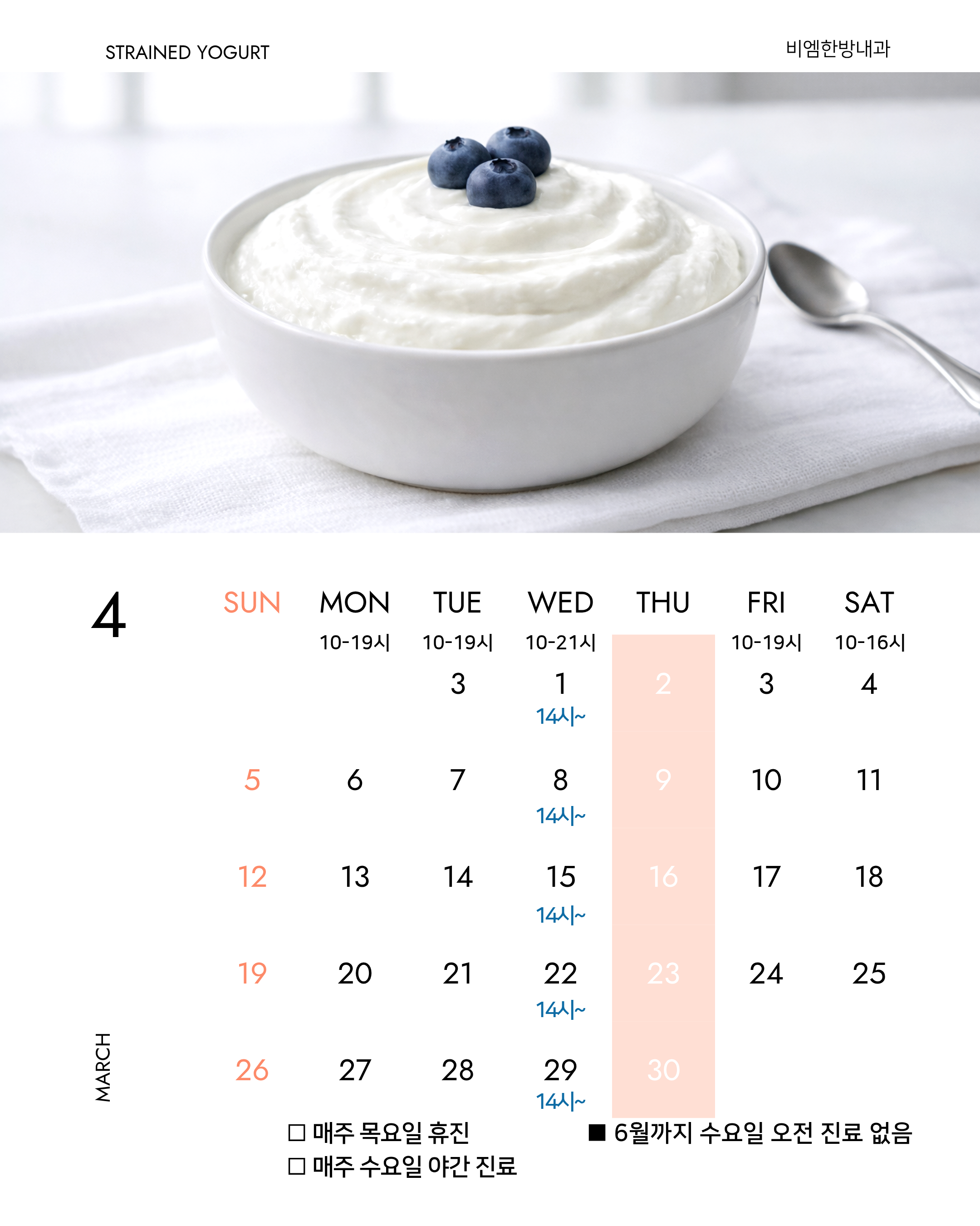 4월 진료 일정 안내